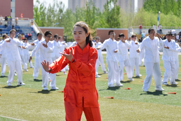 学武先做人,忠厚为根本。中华太极门,正气满乾坤。来自各二级学院、附属医院、国际教育学院的13支代表队参加了太极拳比赛。比赛中,各参赛队伍将太极拳和团体操动作完美结合在一起,设计别出心裁,表演相得益彰,使太极拳的动作少了一份单调,多了一份活泼。基础医学院太极拳方队的表演更是将中华传统元素——武术、汉服、鼓完美融合。红与白的交相辉映,声与乐的相辅相成,五星红旗的迎风招展,震撼人心的孔雀开屏以及“少年强,则国强”口号的振聋发聩,无不体现着齐医学子的活力与风采。参加太极拳比赛的学生表示,他们在长达月余的太极拳方阵练习中,尽管辛苦,但他们始终坚持着、配合着,力求整齐划一,力争为学院争光,通过参加太极拳比赛,沉淀了他们的心性,更增强了他们的团结协作精神和集体荣誉感。
