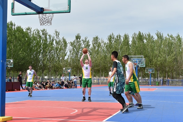 参观结束后,两校篮球队员展开了一场友谊第一、比赛第二的篮球比赛,中俄学生在比赛中建立了深厚的友谊。