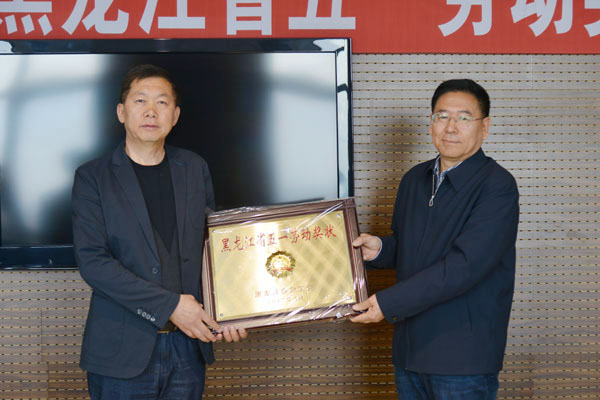 5月24日下午,市总工会主席高景洲、副主席颜羽等一行4人莅临我院,代表省总工会为学院荣获的“黑龙江省五一劳动奖状”进行颁奖,全市共有3家单位获此殊荣。颁奖仪式在图书行政楼1804会议室举行,学院党委书记刘吉成、院长顾长虹、党委副书记崔光成、工会主席何宪坤参加了颁奖仪式。