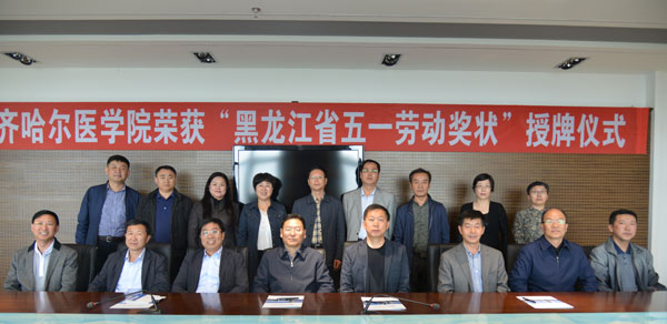 颁奖仪式上,市总工会副主席颜羽代表省总工会,对学院荣获“黑龙江省五一劳动奖状”给予了颁奖词“齐齐哈尔医学院秉承‘大学至善、大医精诚,崇尚学术、追求卓越’的办学理念,弘扬‘自强不息,甘于奉献’的齐医精神,以对学术精益求精的态度,孜孜教书育人,在医学教育事业中,脚踏实地、开拓创新,把学院办成有规模、有特色、有内涵的大学堂,成为黑龙江省培养医学人才的摇篮。”学院党委书记刘吉成作表态发言,他感谢市委、市政府、市总工会给予齐医的鼓励和支持。他说,齐医人秉承“自强不息、甘于奉献”的精神,克服诸多困难走到今天,各项事业取得了长足进步,甚至发生翻天覆地的变化,特别是近年来,在打造大学理念、大学文化方面取得了一些成绩,先后获得了省级文明单位、省级文明单位标兵、全国文明单位等荣誉称号。作为一所大学,学院除了要在人才培养、科学研究、社会服务、文化传承创新等方面做出贡献,也将以此为契机,继续为地方经济社会发展献计出力。