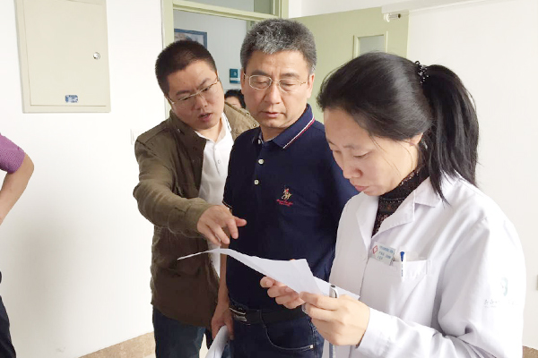 随后,检查组一行先后到医院皮肤性病科、保健科、检验科等地进行实地参观调研,并对所涉及到的性病科、妇产科、泌尿外科医生及检验、报告管理人员进行了现场问答。在皮肤性病科走访期间,检查组一行与医护人员亲切交谈,详细询问了皮肤性病科门诊病人数、新技术和新项目的开展等基本情况,并认真探讨了科室建设和未来规划,对医院HIS系统,特别是传染病管理系统的建立予以高度评价,希望作为齐市4所性病规范化示范门诊之一的皮肤性病科在发展的同时,不断加强技术创新,树立性病示范诊疗中心品牌效应,成为百姓满意的性病诊疗基地。