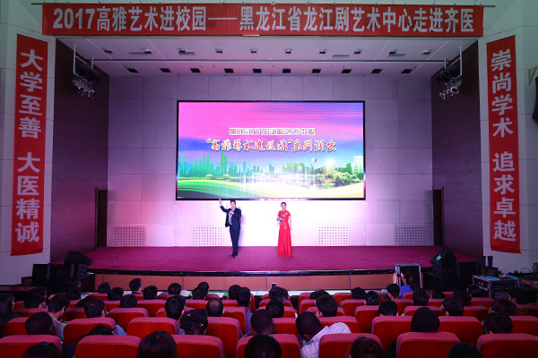 6月9日下午,黑龙江省龙江剧艺术中心走进齐医,40余名演职人员登台献艺,更有国家一级演员、梅花奖获得者李云飞、国家一级演员高运来、王立斌、秦红等艺术家闪亮登场,为师生送上了一场高水平的艺术盛宴。学院工会主席何宪坤等与300余名师生共同欣赏了演出。