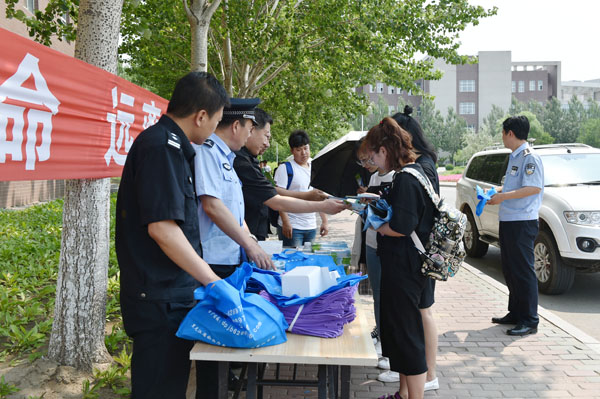 学院保卫处处长尚天歌、副处长孙立强、市公安局国保支队文保大队副大队长房书静参与了此次活动,他们带领工作人员向来往师生发放各类禁毒宣传品,并告诫广大师生员工“珍爱生命,远离毒品”。此次活动共发放禁毒宣传册2000册、禁毒宣传扑克100副、禁毒宣传铅笔2000支、禁毒宣传手提袋400个,希望通过这些宣传品增强广大师生自觉防范和抵御毒品侵害的意识和能力。