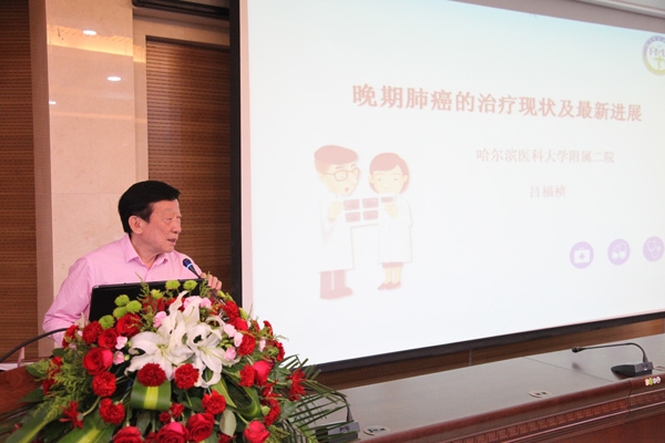 会上,哈尔滨医科大学附属第二医院呼吸二科教授吕福祯、学院附属第三医院放疗科主任、肿瘤医院副院长佟旭、呼吸一科主任宋卓分别作了题为《晚期肺癌的治疗现状》、《抗血管生成的相关研究》和《肺癌的病例分享》的讲座。参会人员认真听取讲座,积极踊跃提出问题。