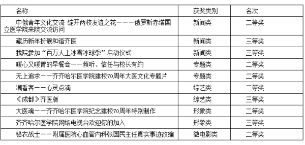 本次中国高校电视奖评选活动共接收全国高校电视734部,创历年新高。学院作为全国唯一一所医学院校参加节目评选,并在众多拥有传媒专业的高校中脱颖而出,为加强学院宣传思想工作、丰富校园文化、展示学院良好形象做出了积极贡献。