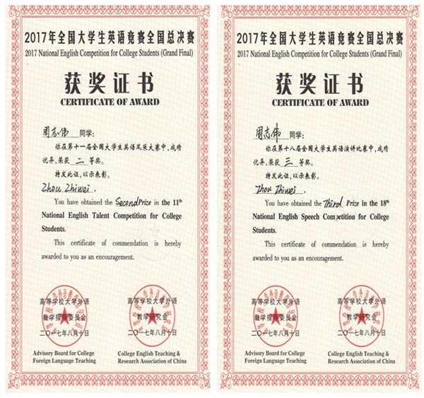 学院学生周志伟在全国大学生英语竞赛总决赛中获奖