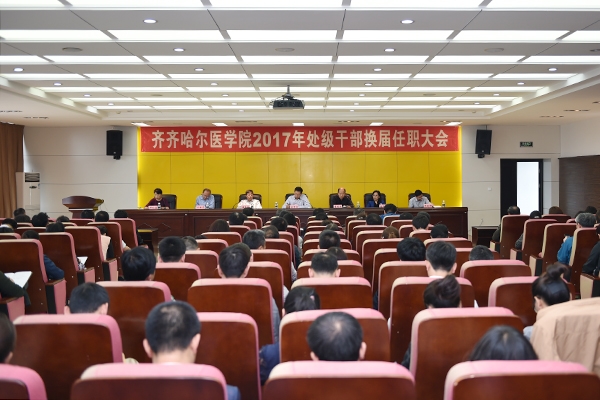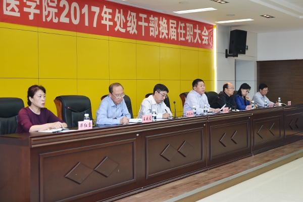 党委书记刘吉成在讲话中指出,学院党委一直高度重视管理干部队伍建设,此次处级干部调整,是在党和国家高度重视人才队伍建设,严格政治纪律和规矩,打造风清气正的干部队伍大背景下进行的。学院严格按照《党政领导干部选拔任用工作条例》,力争选拔一批品德素质好、事业心强、有能力、肯奉献的优秀人员加入到中层干部队伍中。会上,刘吉成书记对新一届处级干部提出了五点要求:一要旗帜鲜明地讲政治,爱党、爱国、爱校;二要提高综合素质、品德修养、人文素养,要带头塑造积极向上的好风气、好作风、好习惯、好形象;三要管理制度化,注重精细化,充分利用现代化工具,提高科学管理能力;四要敢于担当,肯于奉献,勇于创新;五要以身作则,廉洁自律。刘吉成书记号召新一届处级干部,要按照新时期“信念坚定、为民服务、勤政务实、敢于担当、清正廉洁”好干部的标准,尽快适应新岗位、进入新角色,继续发扬“自强不息、甘于奉献”的齐医精神,励精图治,务实担当,为学院的发展建设作出新的更大的贡献!