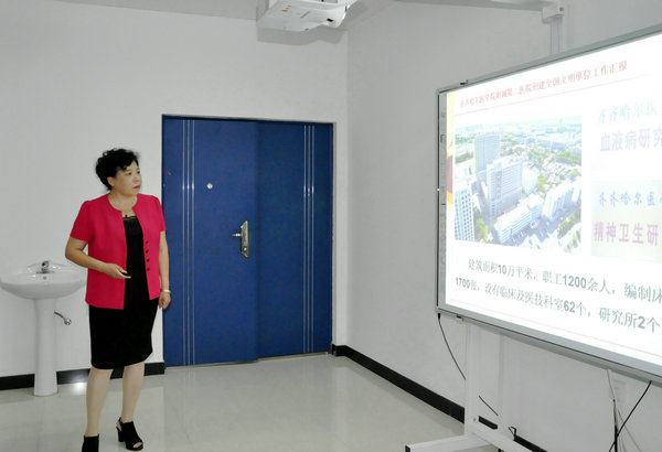 汇报会上,高尚斌副处长提出了本次检查验收的目的、意义、形式和内容,张淑英院长从医院概况、指导思想、创建目标、创建措施和创建成效五个方面进行了详细汇报。汇报的同时,李博文副处长等查看了档案材料,走访了医院环境,进行了问卷调查。