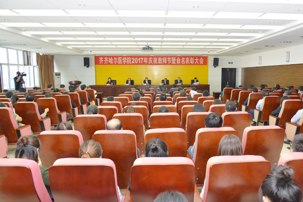 在喜迎十九大的历史时刻,在学院“十三五”规划全面推进,大医园里五彩斑斓,洋溢着收获喜悦的幸福时刻,忙碌在齐医各个角落的辛勤园丁们迎来了第33个教师节。9月7日下午,学院在科技楼五楼报告厅召开了2017年庆祝教师节暨命名表彰大会。学院院长顾长虹出席会议并讲话,学院领导刘吉成、崔光成、王晓星、张晓杰、何宪坤出席大会,机关干部、附属医院领导班子成员、全体受表彰人员和师生代表参会,大会由学院副院长王晓星主持。