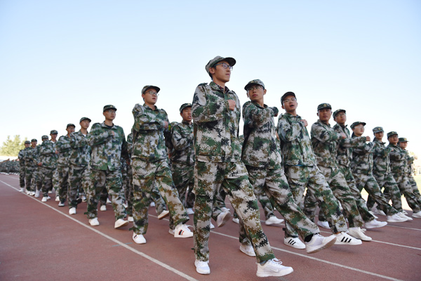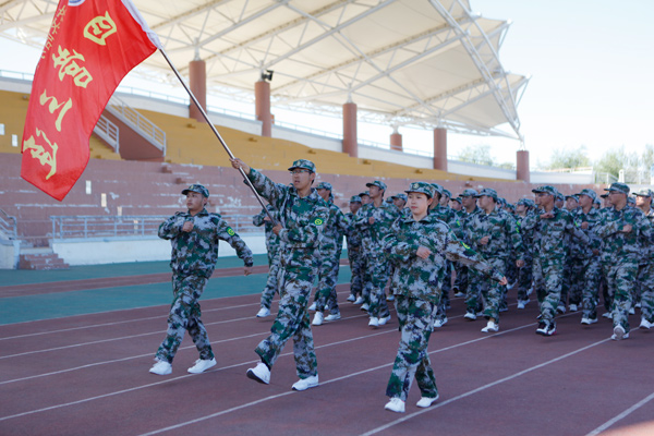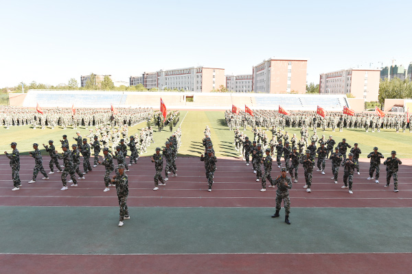 在2017级全体同学雄壮的国歌声中,五星红旗冉冉升起。升旗仪式后,伴随着慷慨激昂的《解放军进行曲》,在学院国旗护卫队带领下,2017级学生军训团5个营25个连队新生迈着整齐矫健的步伐、喊着铿锵有力的口号依次通过主席台,展示他们刻苦训练的成果,接受主席台检阅。主席台领导对他们优异的表现致以微笑和掌声。分列式结束后,军训团进行了擒敌拳、战场急救等科目表演。表演科目动作规范、队形整齐、气势雄壮、口号响亮,展现出当代军人的风采,征服了在场的每一位观众,赢得了阵阵雷鸣般的掌声。