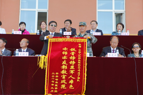 学院院长顾长虹向承训部队领导赠送锦旗