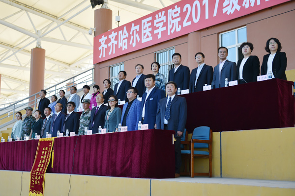 军训总结大会后,新生开学典礼正式开始,2017级全体学生庄严宣誓:决心竭尽全力除人类之病痛,助健康之完美,维护医术的圣洁和荣誉,救死扶伤,不辞艰辛,执着追求,为祖国医药卫生事业的发展和人类身心健康奋斗终生。