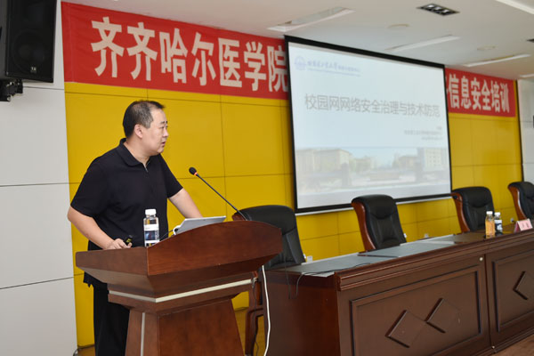 为提高处科级干部网络信息安全意识,9月20日,学院邀请哈尔滨工业大学辛毅博士来院,作了《校园网网络安全治理与技术防范》专题培训讲座。学院副院长张晓杰全程听取讲座并对学院网络信息安全工作提出明确要求,讲座由宣传统战部部长张宝林主持,全院处科级干部及部分学生代表近200人参加了培训。