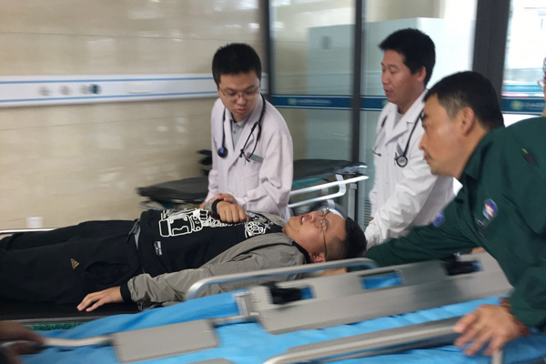 当日,患者(附属三院医生扮演)与其母亲在大润发建华店购物过程中突发心前区疼痛,伴大汗,有濒死感,于路边休息半小时胸痛仍持续不缓解。14点零8分,患者母亲拨打120;14点16分,120急救车到达,一边简单询问病情,一边将患者抬上单架,心电图显示“急性ST段抬高型下壁心肌梗死”;14点22分,患者到达急诊室,急诊室医生及心内医生共同接诊。急诊医生对患者进行问诊、测量血压、心电监护,心内医生与患者家属沟通,告知病情及交待手术风险,家属知情理解后签署介入知情同意书;14点31分,心内值班医生与已经在导管室等待的介入医生简单介绍病情,转交心电图,并对患者用药情况进行交接。此次演练顺利完成。