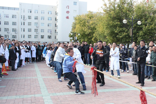 为迎接国庆节、中秋节两大节日,倡导精神文明建设,锻炼健康体魄,9月28日,附属一院组织开展了“金秋十月”拔河比赛。医院院长李忠原,纪检委书记、工会主席胡晓强,副院长李兴江参加了比赛。