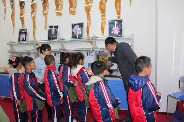 10月25日上午,水师营满族镇中心小学学生在该校副校长崔红的带领下,参观了学院图书馆和形态学展馆等地。