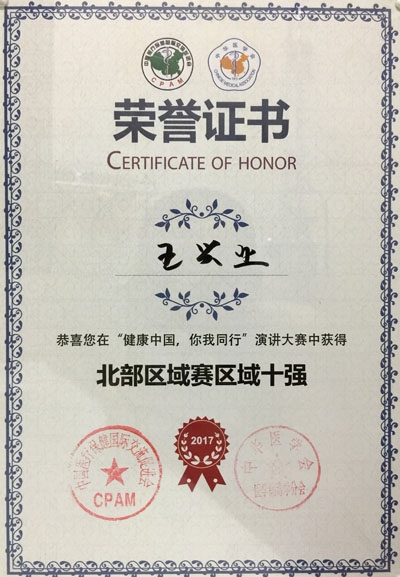 11月11日,“健康中国,你我同行”演讲比赛北部赛区比赛在吉林大学第一医院拉开帷幕,来自黑龙江、吉林、辽宁、内蒙古自治区的15名选手参加比赛。经过激烈角逐,附属三院检验科王兴业以94.6的高分取得了第1名的好成绩,成功晋级全国决赛。