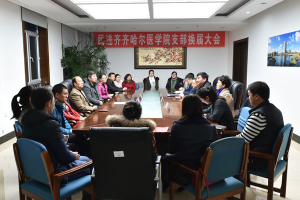 民进市委主委曲政在会上讲话,对学院党委及统战部对民进会员的培养和教育表示感谢,对学院在服务齐市地方经济社会发展,提升齐市城市品位和文化影响力等方面所做的工作给予了充分肯定。他从加强政治理论学习、加强基层组织建设、发挥参政议政作用等方面对民进齐齐哈尔医学院支部的工作方向、工作目标提出了要求:他要求会员要积极学习贯彻中共十九大精神,结合实际,加强自身建设、岗位建设,在自身工作岗位上做出成绩的基础上,更好地参政议政、建言献策,要增强党派意识,学会章、会史,不忘合作初心继续携手前进;他要求支部领导班子成员要加强班子建设,率先垂范,结合学院党委工作开展党派活动。