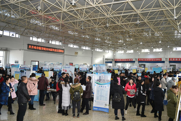 11月21日,齐齐哈尔医学院2018届毕业生冬季招聘会在秋实城三楼如期举行。此次招聘会共有来自北京、上海、广东、福建、江苏、四川、甘肃、内蒙古、新疆等23个省市自治区的174家用人单位参会。经过双向交流选择,563人与用人单位达成就业意向,197人与用人单位签约。