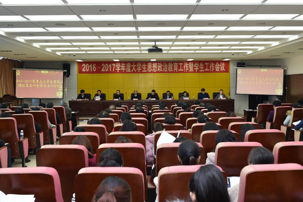 学生工作部、招生就业处、团委、马克思主义学院全体人员;党办、组织部、宣传统战部、院办、教务处、科研处、人事处、国际交流合作处、保卫处、财务处、后勤管理处、高教研究与教学质量评估中心(教师发展中心)、现代教育技术中心、体育教研部等部门负责人;各二级学院领导班子成员;全体辅导员和班主任;附属医院教学副院长、学生科全体人员、团委书记等200余人参加会议。