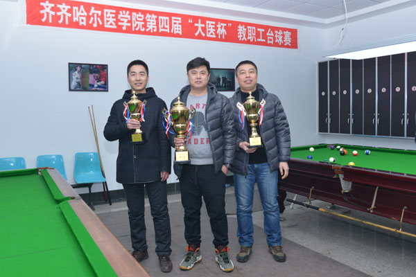台球这项在国际上广泛流行的高雅室内体育运动,受到越来越多教职工的喜爱和参与。比赛过程中,精彩场面不断涌现,队员们以规范的动作、华丽的球姿、精湛的球技、严密的防守赢得了现场观众的阵阵掌声。经过一天的激烈角逐,最终,后勤代表队摘得了团体比赛桂冠,附属一院代表队获得亚军,教联第一代表队获得季军;在个人项目比赛中,附属二院代表队刘永超、附属三院代表队李仁富、附属一院代表队解诗远、机关代表队李德福、后勤代表队林旭、机关代表队乔树清分别获得个人比赛前6名。比赛结束后,工会为获奖队员颁发了奖杯和奖品。
