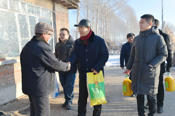 12月29日,学院党委副书记崔光成率队深入我院精准扶贫联系点富裕县富路镇长发村,开展入户走访慰问活动。后勤管理处长徐辉、组织部副部长郭伟东陪同走访。