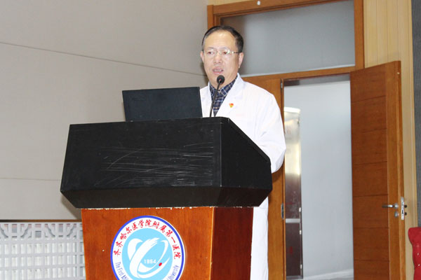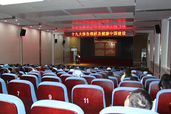 为深入学习宣传贯彻党的十九大精神,勉励广大党员不忘初心,牢记使命,1月2日,附属一院党委书记张忠太作为十九大精神宣讲团成员,以《十九大报告理解及健康国家建设》为题,在医院学术报告厅宣讲了十九大精神,医院领导、中层干部、科主任、护士长及全体党员参会。