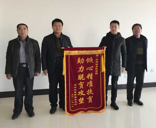 1月26日上午,富裕县富路镇长发村村支部书记侯庆军一行,为学院送来了印有“倾心精准扶贫,助力脱贫攻坚”的锦旗,感谢学院对长发村精准扶贫工作的大力支持,组织部副部长郭伟东接待侯书记一行并接受锦旗。