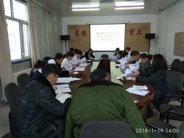 为充分发挥文化在医院发展中的积极推动作用,开展好建院90周年纪念活动, 1月19日下午,附属三院在连廊会议室召开建院90周年纪念活动、医院文化建设工作落实推进会。医院党委书记李玉雪出席会议并作重要讲话。17个相关职能部门负责人参加了会议。会议由宣传科科长赵娟主持。