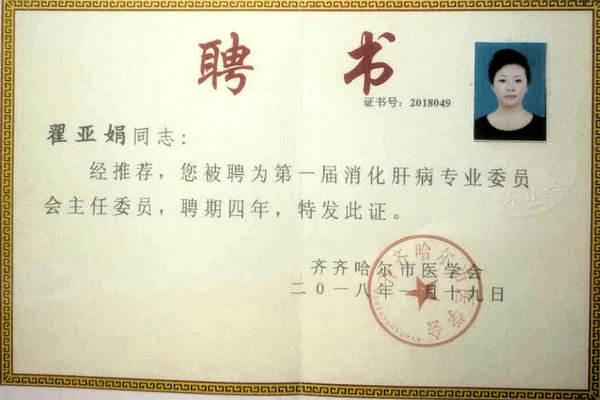 翟雅娟教授表示,做为首届齐齐哈尔市医学会消化肝病专业委员会主委,深感肩上担子的沉重和责任的重大,今后消化肝病专业委员会在医学会的领导下和支持下,多开展专题会议及各项活动,以进一步提高肝病的治疗水平,引进及开展新的技术,同时组织专家走向基层走向最需要帮助的农村,相互启发、取长补短,共同提高消化肝病的整体诊疗水平。