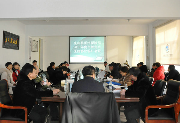 1月20日,克山县医保局局长徐洪刚等一行六人莅临附属二院签订2018年度市级定点协议,全市各联网定点医疗单位主管院长、医保科科长出席会议。