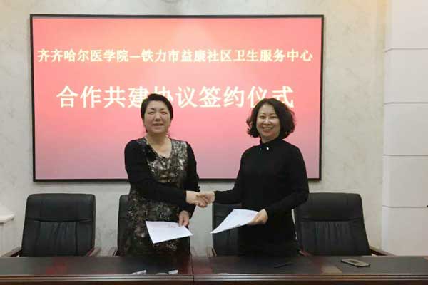 益康社区卫生服务中心服务区域辐射铁力市10个城镇社区6个行政村,辖区人口近12万人,在孕产妇保健、0-6岁儿童健康建档、慢病干预及随访等方面基础工作扎实雄厚、数据库资料详实庞大。根据合作共建协议,护理学院将在教学培训、科研合作、师资队伍建设等方面与益康社区卫生服务中心携手共建,在互惠互利、合作共赢的基础上,推动双方医教研一体化工作的顺利开展,发挥大学的社会服务职能,为地方经济社会发展做出贡献。