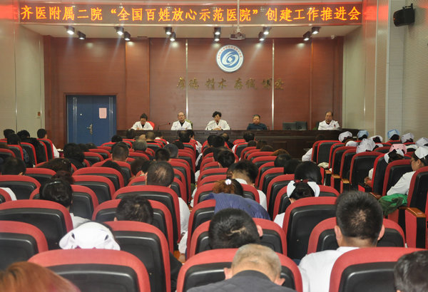 2月28日下午,附属二院在临床技能培训中心多功能厅,召开了全国百姓放心示范医院创建工作推进会。医院院长张淑英作动员讲话,党委书记丁国旭等领导班子成员及全体中层干部参加会议,会议由院办主任董晓明主持。