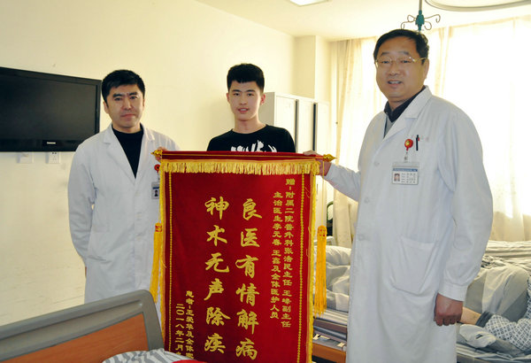 春节前,张先生为感谢普外科全体医护人员的高超诊疗技术,特地赠送了锦旗。