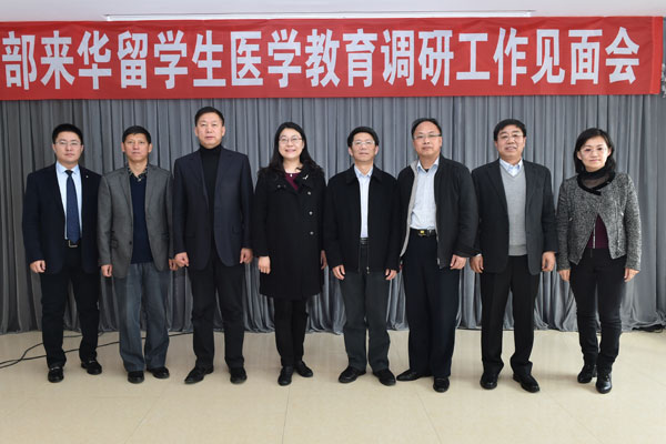 3月26日-27日,教育部第10调研组专家郑州大学基础医学院郑红教授、福建医科大学海外教育学院连铸淡教授、首都医科大学外科教研室康骅主任医师一行三人,在省教育厅国际合作与交流处副处长宗希云陪同下莅临学院,开展来华留学生教育调研工作。
