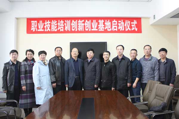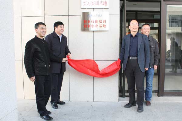 学院党委副书记崔光成、市人社局副局长赵峰、环保局局长蒋百军、环境监测站站长张立臣为基地揭牌