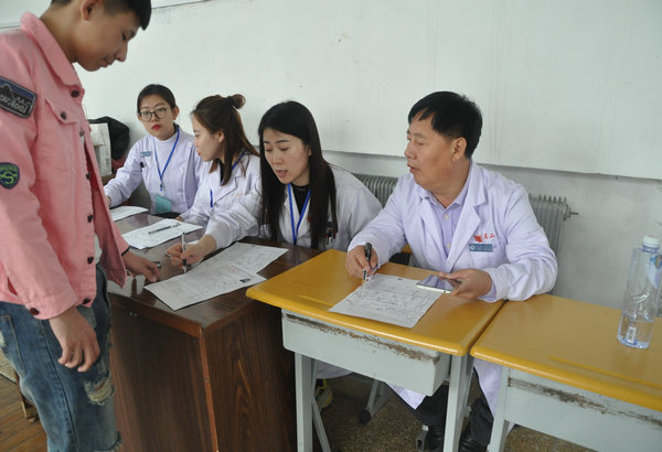 我院医务人员在为高考学子体检