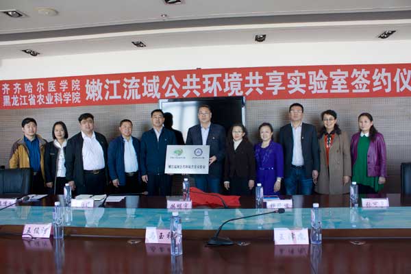 仪式上,学院副院长丛明宇与省农科院总农经师马玉祥分别代表齐齐哈尔医学院和省农科院齐齐哈尔分院签署了《科技合作与交流框架协议》,并为共享实验室揭牌。根据协议,双方将本着“优势互补、资源共享、互惠双赢、共同发展”的原则,全面开展实验室开放、科学研究、人才培养等方面的合作,建立长期、紧密的共建关系。