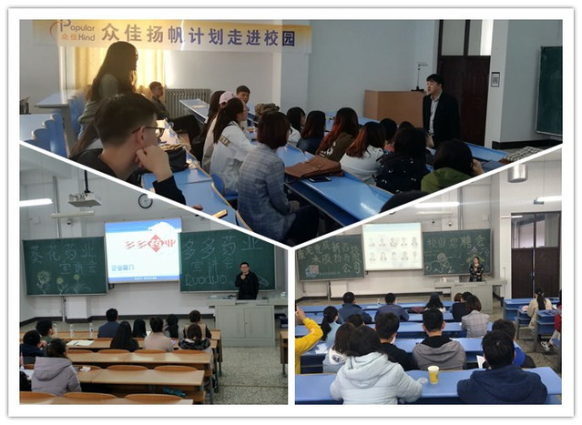近期,药学院分别邀请葵花药业有限公司、康龙化成新药技术股份有限公司、多多药业有限公司、众佳商务咨询有限公司等4家公司来院,举办专场招聘会。经过宣讲、笔试、面试,最终有25名学生与用人单位签订了就业协议。专场招聘会的成功召开,实现了高校毕业生与社会企业的有效对接,为毕业生提供了更多就业机会,同时,为企业引进优秀人才搭建了平台,提升了学院就业质量,实现了学校、毕业生与企业的共赢。(药学院2018年5月7日供稿)招聘会现场
