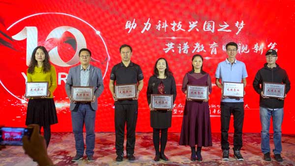 现代教育技术中心主任张淑玮(左四)领取先进集体奖牌