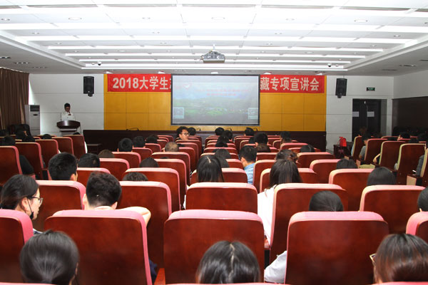 按照团省委的统一部署,5月16日下午,西部计划西藏专项宣讲团一行8人,在学院科技楼五楼报告厅举行了2018年西部计划西藏专项宣讲会。西藏自治区拉萨团市委副书记蒋曦,西部计划西藏项目办主任文智霖、项目办干部孙羽,学院团委副书记衣英欣以及180余名即将毕业的各专业学生代表参加了宣讲活动。
