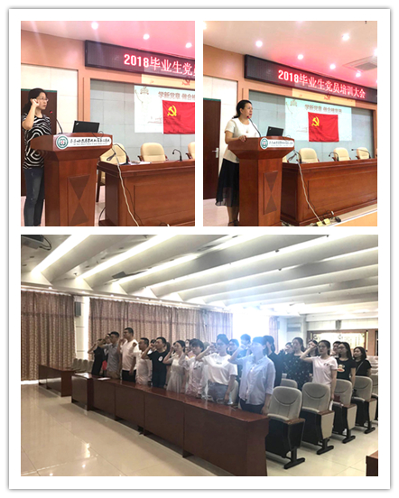 “我志愿加入中国共产党,拥护党的纲领,遵守党的章程,履行党员义务,执行党的决定,严守党的纪律,保守党的秘密,对党忠诚,积极工作,为共产主义奋斗终身,随时准备为党和人民牺牲一切,永不叛党。”本次培训大会伴随着党支部书记崔颖老师带领全体党员重温慷慨激昂的入党誓词拉开帷幕。重温的意义在于与时俱进,不忘初心,恪守承诺。学生们大声宣读誓词时那紧握的右手和那敬畏而坚定的神情,透露着学生党员们一如既往的决心和信念,令人感动,令人热血澎湃。
