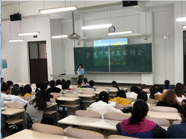 会后,召开了小型招聘会。牛春红副主任对医院的就业环境、专业人才队伍现状、行业前景及天津接纳外地毕业生的政策进行了宣讲,并对招聘要求进行了详细说明;对即将前去实习学生的学习提出了相关要求。随后,学院学生与用人单位进行了积极沟通。