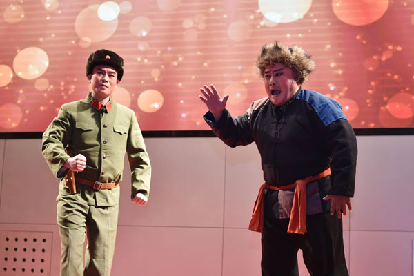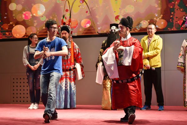演出过程中,学生代表还上台与各位老师互动,学习了演员表演动作和唱腔,老生之哭,花脸之笑,现场互动热烈,笑声满堂。学院宣传统战部部长张宝林也应邀表演了京剧《红灯记》选段《穷人的孩子早当家》,引来满堂彩。