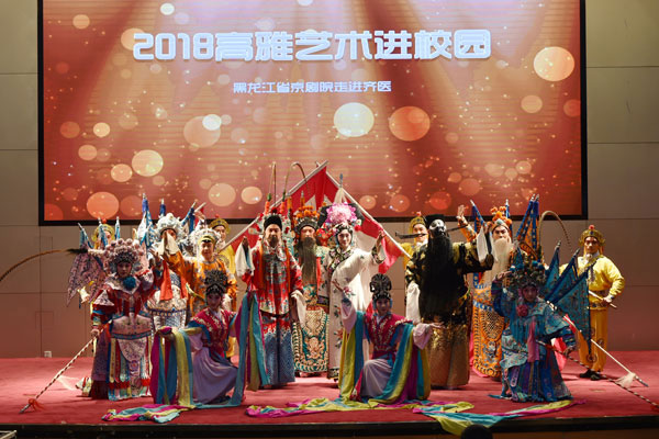 为丰富校园文化生活,陶冶学生情操,6月12日晚,黑龙江省京剧院走进齐医,在图书行政楼二楼多功能厅为师生们献上了一场精彩纷呈的国粹盛宴。