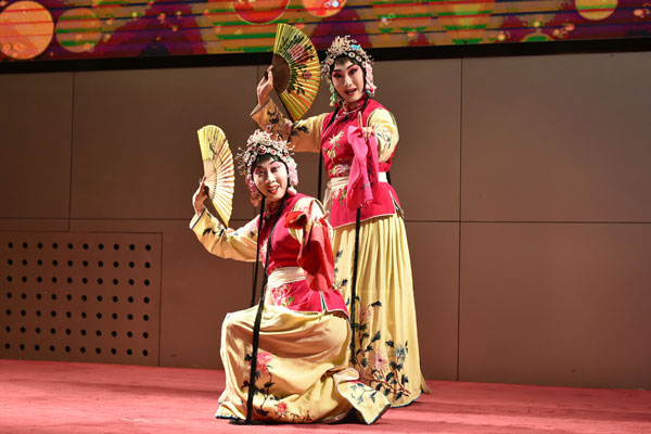 在师生们热切的期盼中,国家一级京胡演奏员滕希娟带来的经典京胡交响协奏曲《迎春》拉开了专场演出帷幕,《迎春》以京胡为主奏乐器,曲调欢快跳跃,令人心旷神怡。随后京剧经典剧目《定军山》选段,讲述了蜀老将黄忠老当益壮,攻占曹军定军山的故事,展现了“老骥伏枥志在千里”的豪情;《报灯名》节奏性强;《卖水》演员载歌载舞, 眼神灵动、嗓音甜脆,把传统花旦戏里特有的“退步圆场”“晃摇肩膀”程式表演得绝美;《坐宫》摇曳多姿,委婉细腻,层次分明;一段《赤桑镇》展现了包拯秉公执法、不徇私情的美德;国家一级演员蒋兰兰和国家二级演员解振宇等表演的现代京剧唱段《红灯记》、《智取威虎山》则勾起了几代人的回忆,场面温馨;京歌《中国戏曲》展现了演员们唱、念、做、打的基本功。