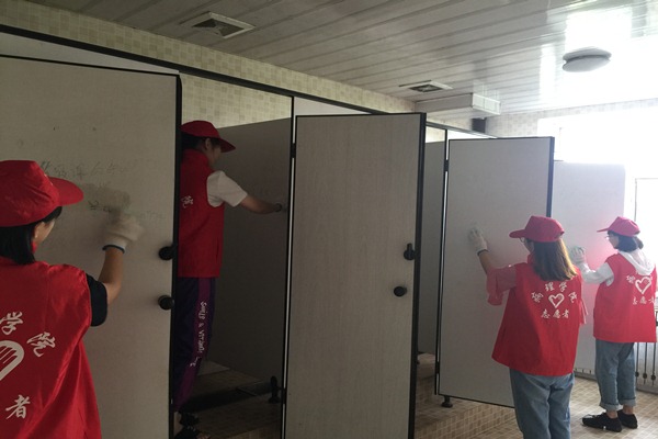 在活动中,毕业生们分别对宿舍和校园进行了清扫服务。在宿舍楼里,她们认真打扫死角垃圾,擦拭楼梯扶手及窗台的灰尘,清理了厕所内的涂鸦乱画及小广告,检查并及时关闭滴水的水龙头,节约每一滴水资源。作为病理学院志愿者服务队的一员,毕业生们又像过去一样,对校园内的垃圾进行了清理,并整理摆放了宿舍楼门前的自行车,为学弟学妹们创建了一个整洁的校园环境。