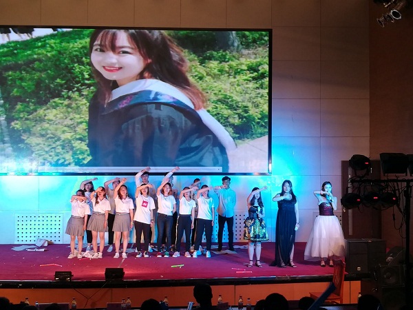 毕业典礼结束后,“终四季之旅,始人生之程”毕业生联欢晚会拉开帷幕。舞度带来的开场舞燃爆全场,《舞动青春》和《致青春》舞蹈充分彰显学生的活力与激情,小品《督察》勾起了同学们对青葱岁月的回忆,舞蹈《青花瓷》让观众在听觉与视觉的享受中体会古典美的神韵。《离人愁》将音乐、舞蹈与表演完美融合,给观众带来一场视听盛宴。《歌曲串烧》唱出了同学们对彼此的美好祝愿。诗朗诵《我们毕业了》感情饱满,感人至深,诗中充满了对毕业生的不舍留恋和祝福,毕业生们满含感伤和感动的泪水。晚会最后全体师生共唱校歌《插上天使的翅膀》,歌声余音绕梁,透漏出浓浓的离别愁绪与难忘的校园记忆,离别之情、感恩之情相互交织,渲染着离别的不舍和淡淡忧伤。