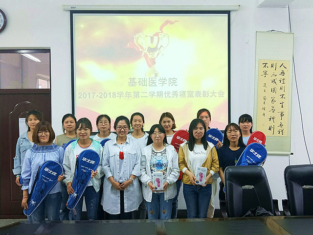 为推进校园文明建设,优化寝室环境,培养学生养成爱生活、讲文明、勤自律的好习惯, 7月2日上午,基础医学院辅导办在主楼南区350会议室举行2017-2018学年第二学期“青春携手,共建文明”优秀寝室表彰会议。基础医学院辅导员李欣老师主持会议,各年级辅导员代表、学生代表、获奖寝室学生参加会议。