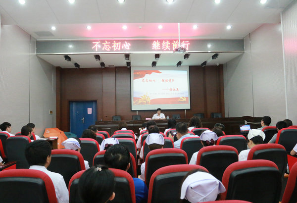 7月4日14时30分,我院千堂党课进支部活动正式拉开帷幕,院长张淑英在临床技能中心一楼多功能厅首先开讲,她以“不忘初心 继续前行”为题,为内科第一、第三党支部和机关第一党支部全体党员作了精彩讲解。